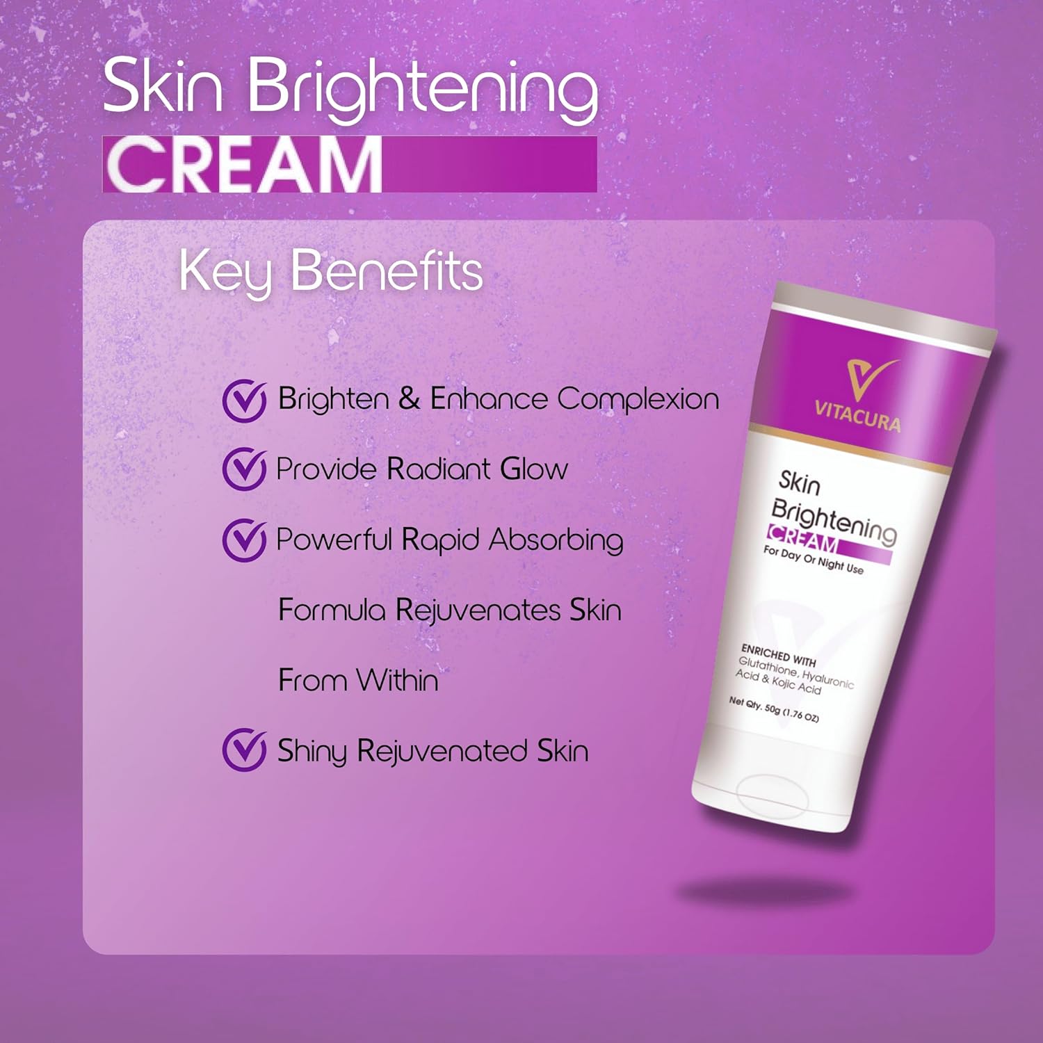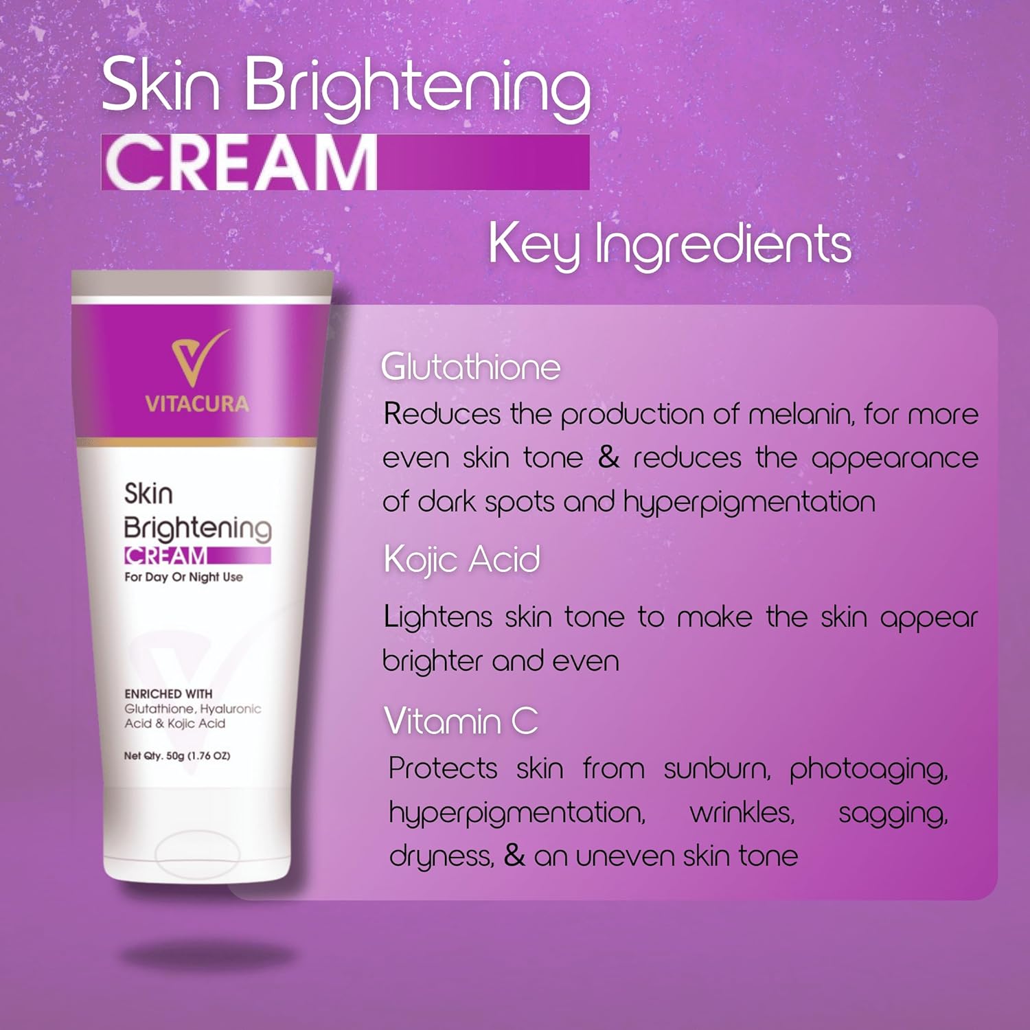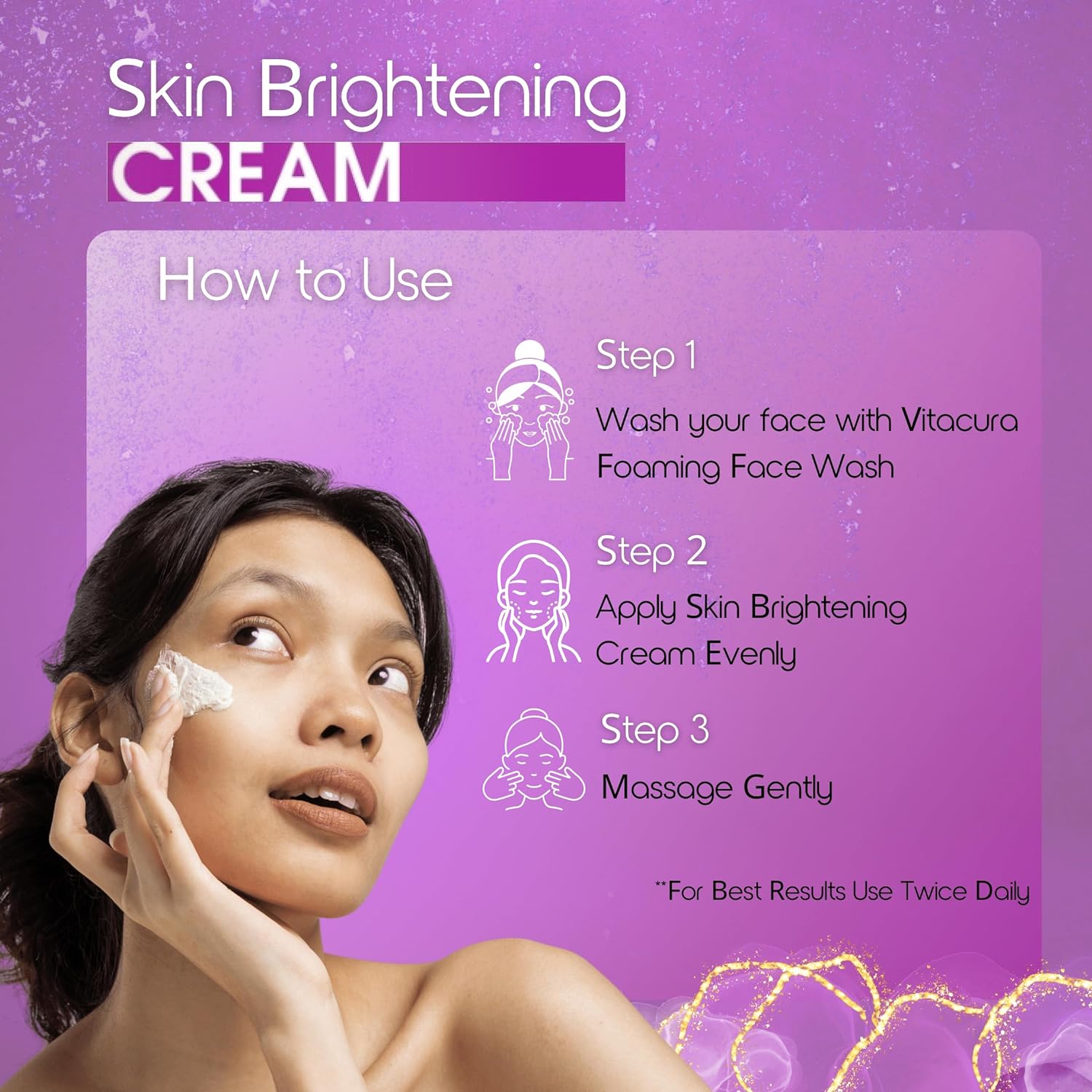 - Enhanced Brightening Formula: Vitacura Skin Brightening Cream is meticulously crafted with advanced ingredients to visibly brighten and even out skin tone, providing a radiant and luminous complexion suitable for all skin types.